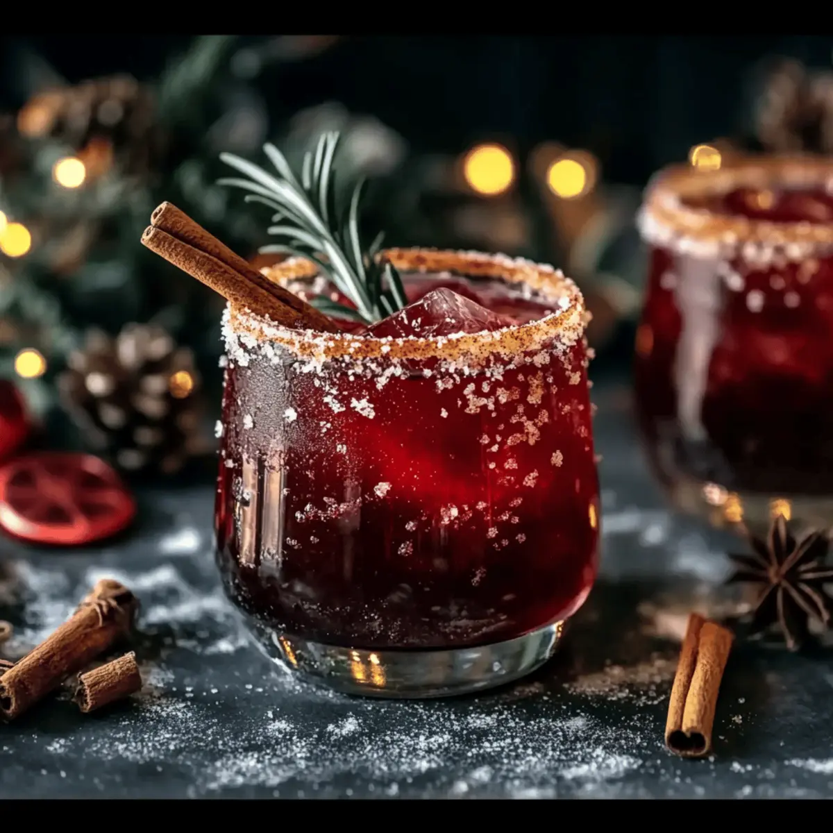 Eye-Catching Presentation: The ruby-red hue and delightful cinnamon-sugar rim make it not just delicious but visually stunning for your holiday gatherings.